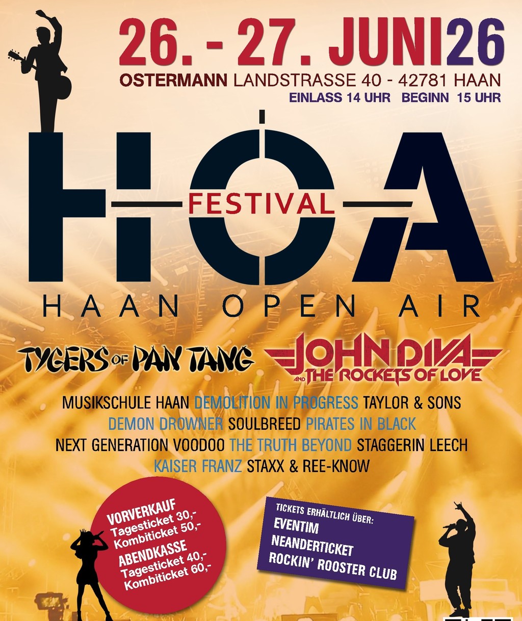 HOA · Haan Open Air Festival · Tygers of Pan Tang · John Diva & the Rockets of Love und andere Bands